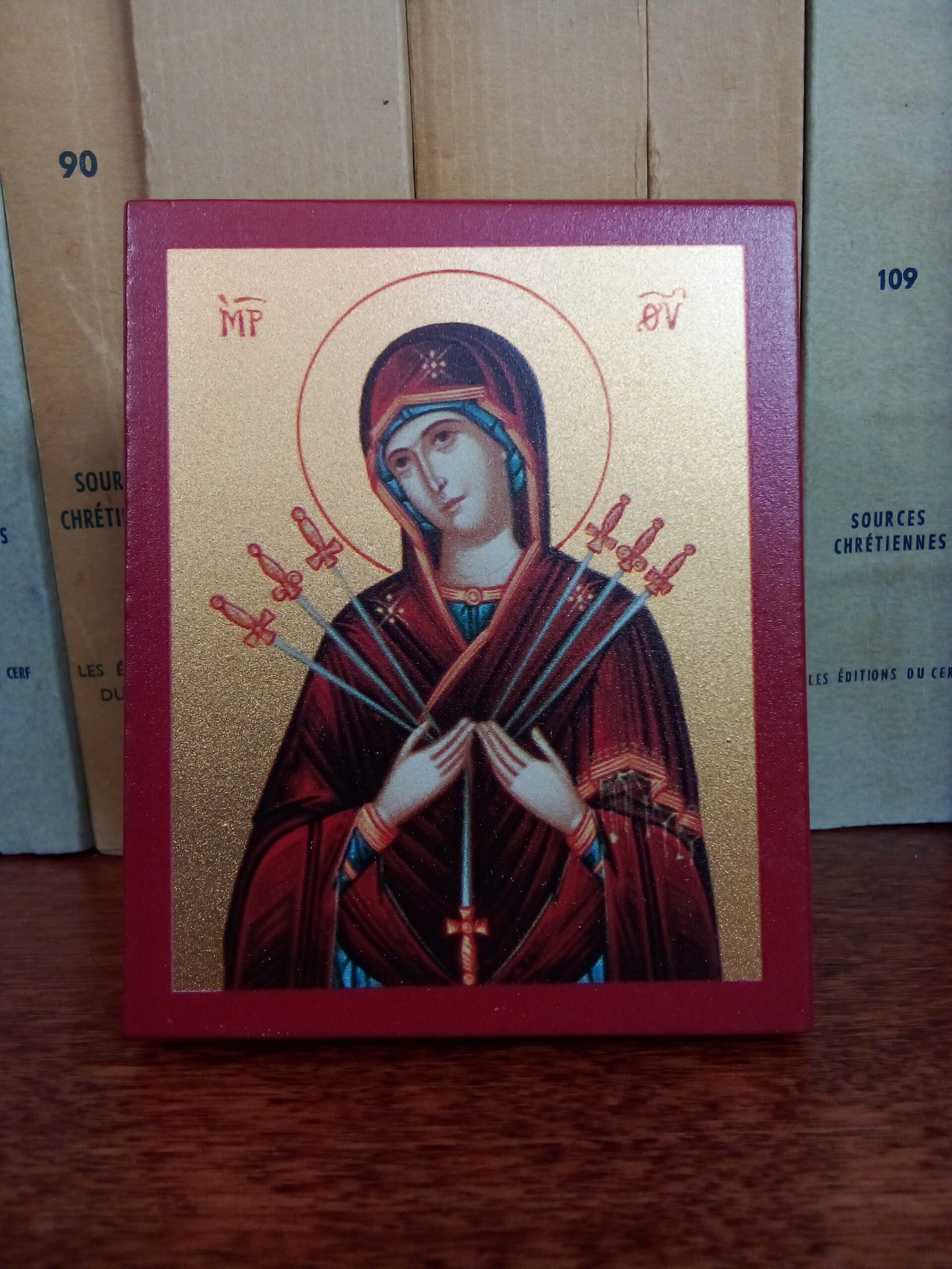 Avaleht/Seitsme mõõgaga Jumalaema ikoon (ca 7 x 9 cm) (väiksem)
