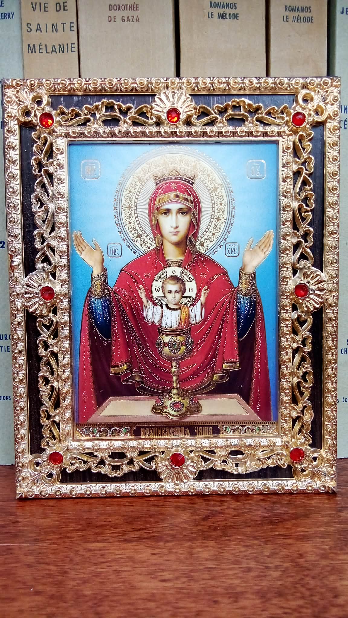 Avaleht/Jumalaema ikoon (“Ammendamatu karikas”, ornamentidega raam, ca 14,5 x 11,5 cm)