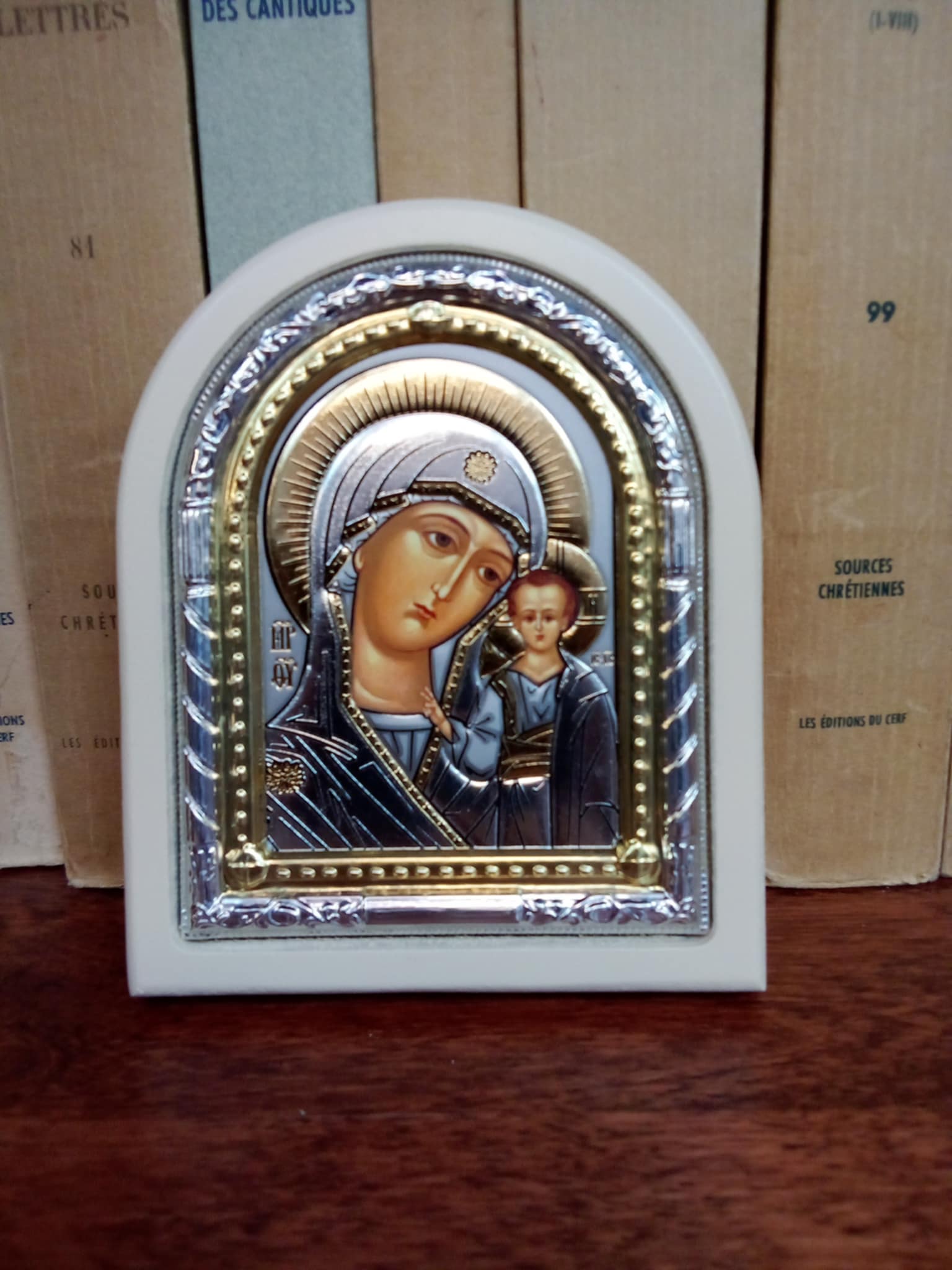 Avaleht/Jumalaema (Kaasani) ikoon (heleda raamiga, ca 10,7 x 8,7 cm)