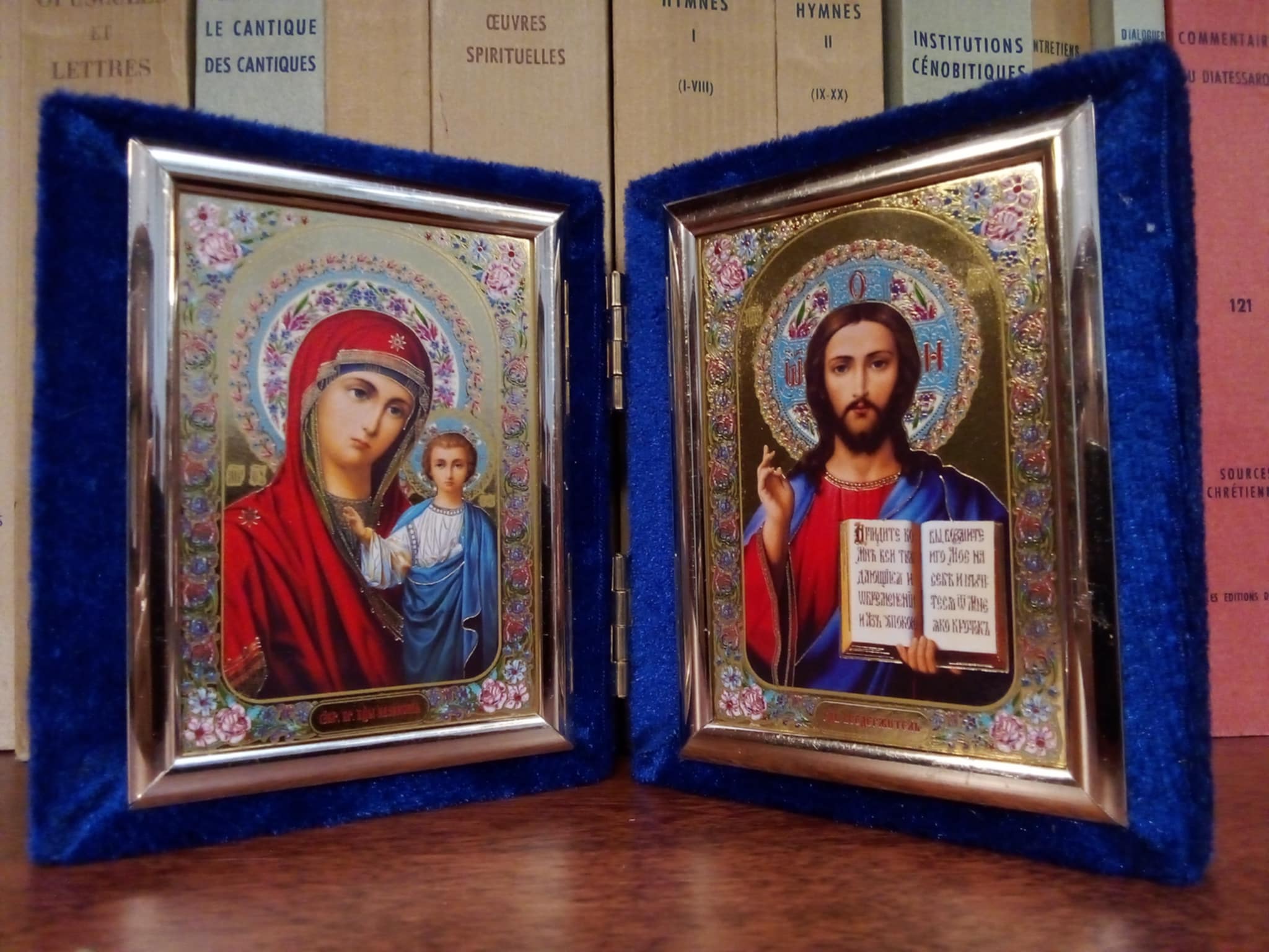 Avaleht/Kristuse ja Jumalaema kaksikikoon (siniste kaantega, ca 11 x 9 cm)