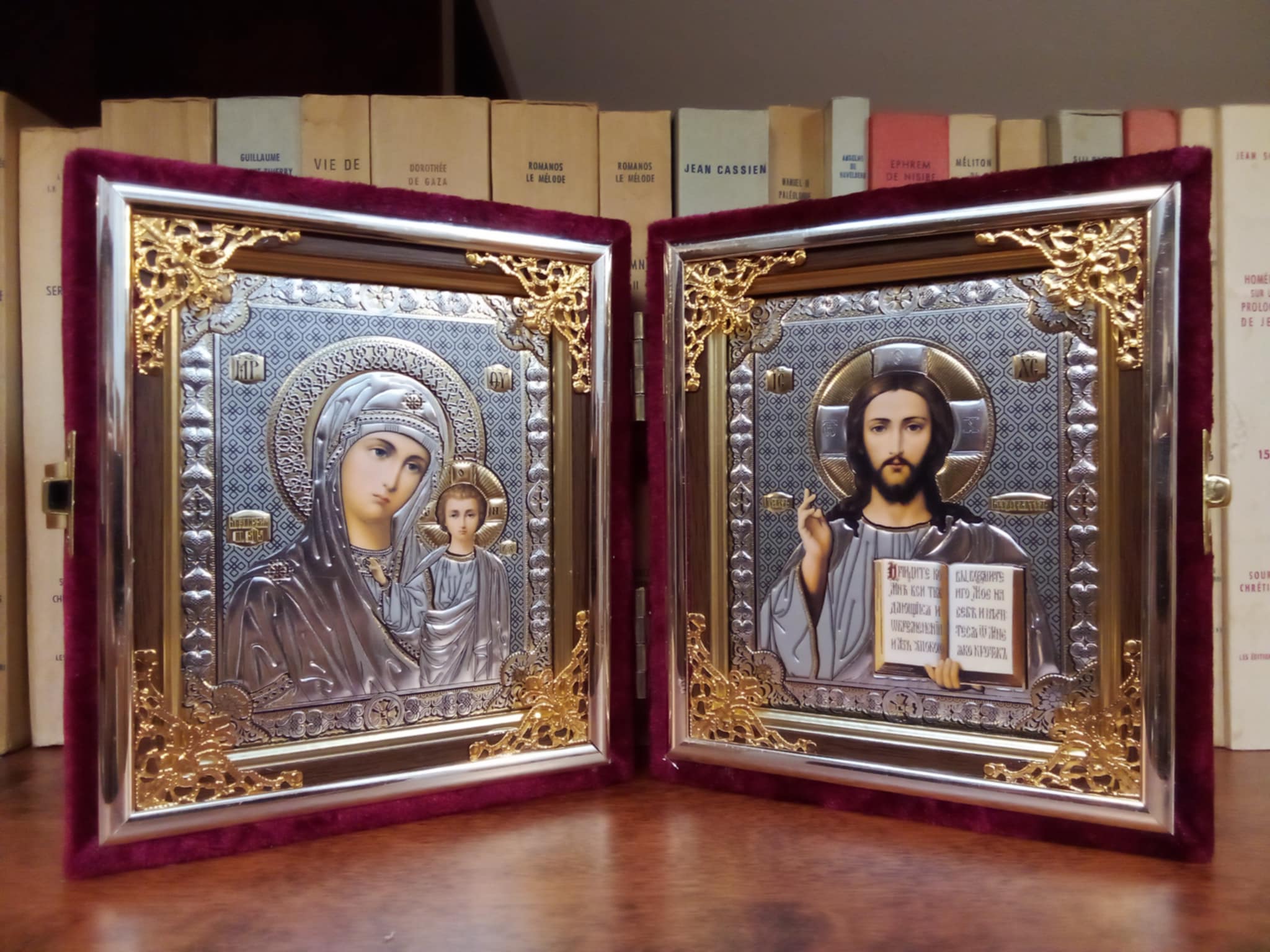 Kristuse ja Jumalaema kaksikikoon, sametised kaaned, kokkupandav.