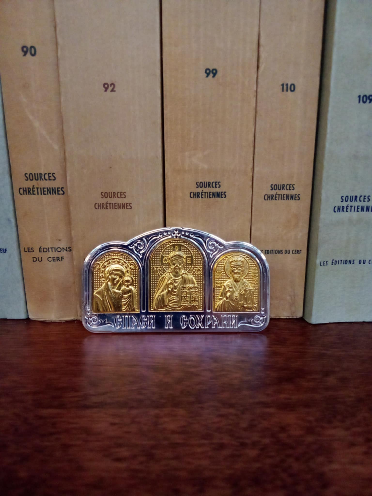 Kristuse, Jumalaema ja püha Nikolai kolmikikoon, kleebitav.