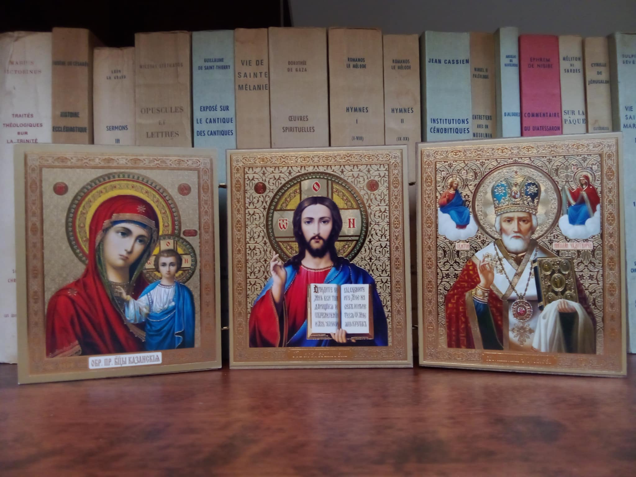 Kristuse, Jumalaema ja püha piiskop Nikolai kokkupandav kolmikikoon. Ühe ikoonitahvli mõõtmed ca 12 x 10 cm.