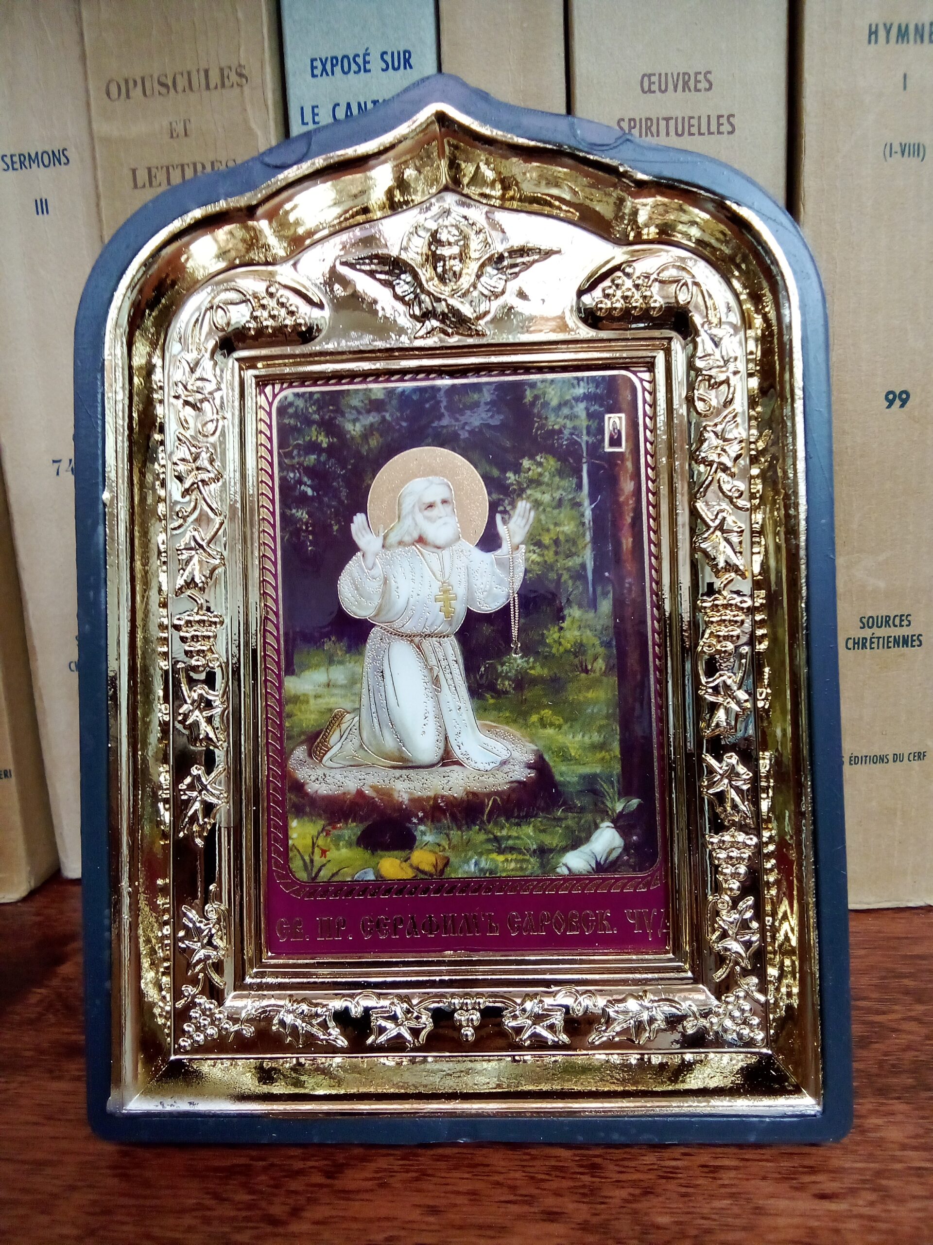 Avaleht/Püha Saarovi Serafimi ikoon (ca 13,8 x 9,8 cm, kuldse raamiga 1)