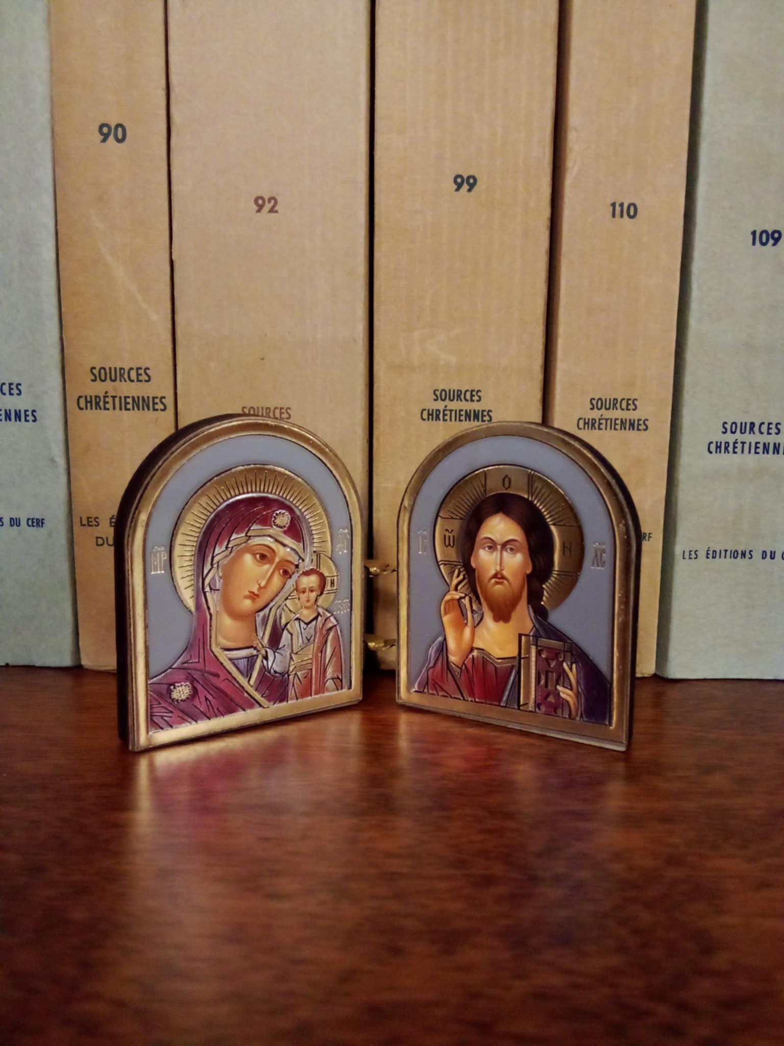Väike Kristuse ja Jumalaema kaksikikoon, ühe ikoonitahvli mõõtmed ca 5 x 4 cm.