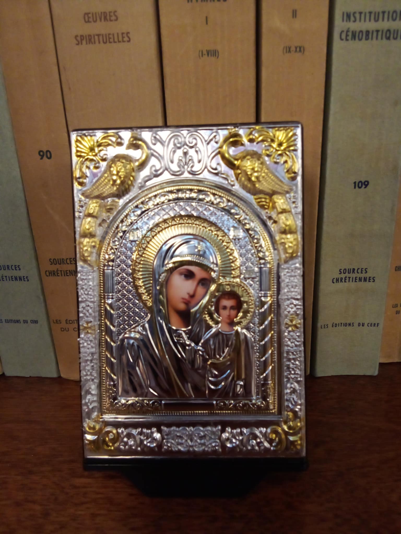 Jumalaema ikooniga kinkekarp, sahtlis palvenöör-käevõru, ohutis, roosiõli.