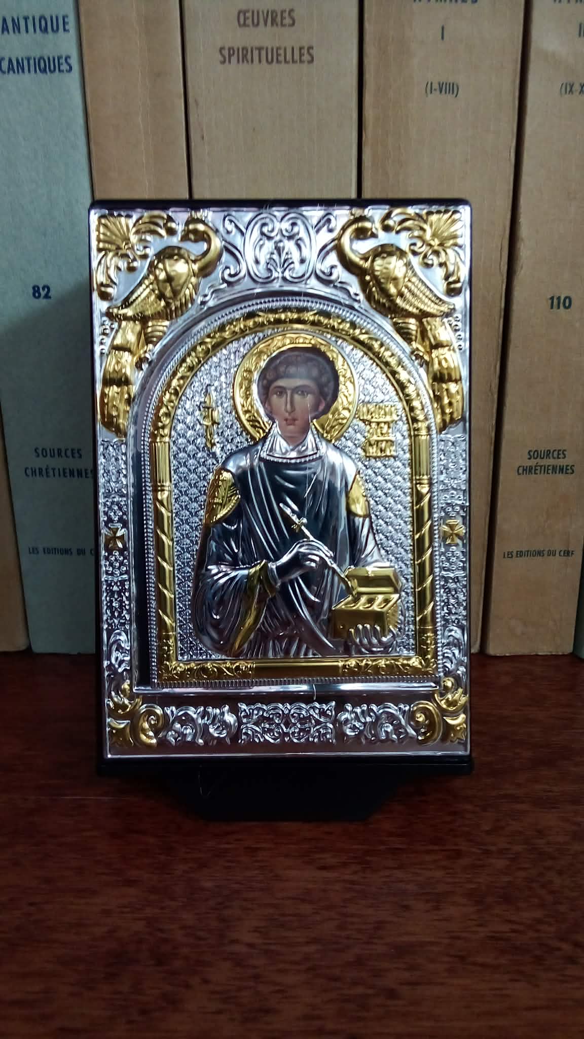Avaleht/Püha Panteleimoni ikooniga kinkekarp (ikoonitahvli mõõtmed ca 10,5 x 7 cm)
